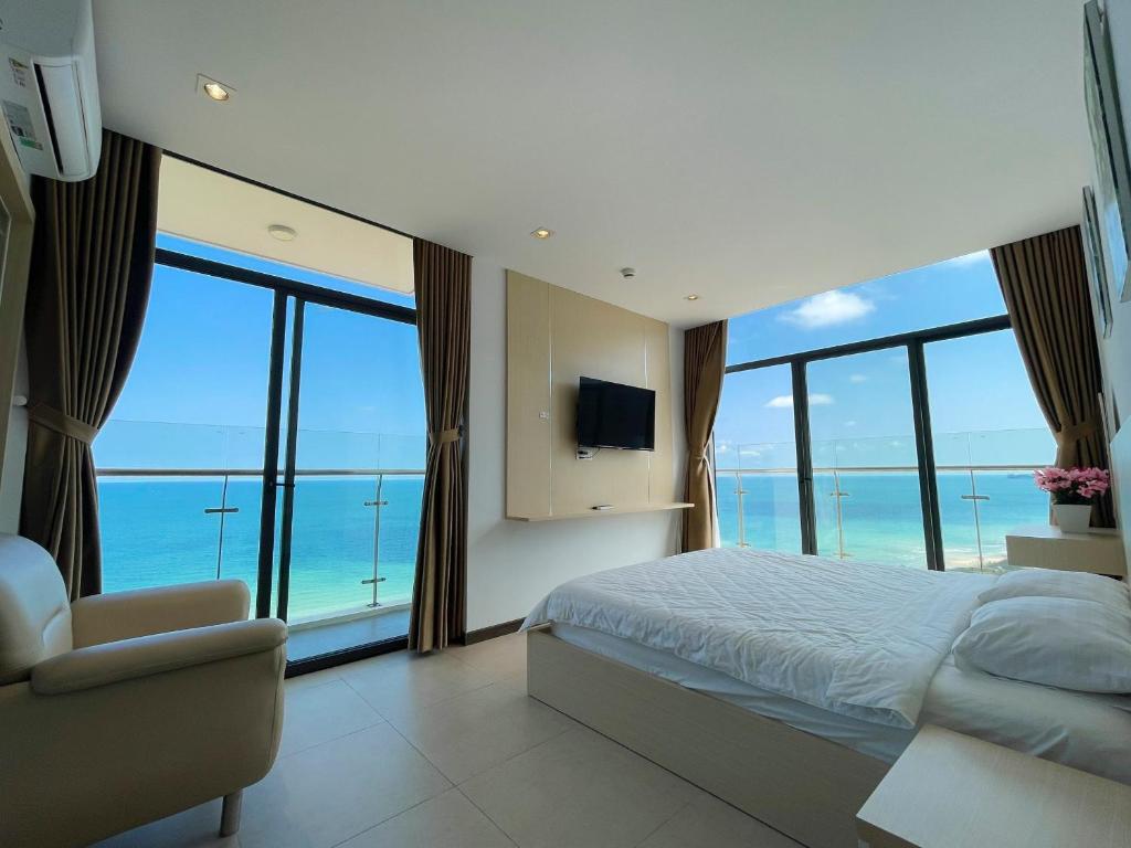 · Phòng khách: Sofa êm ái, bàn trà, TV màn hình lớn, ban công rộng nhìn thẳng ra biển.