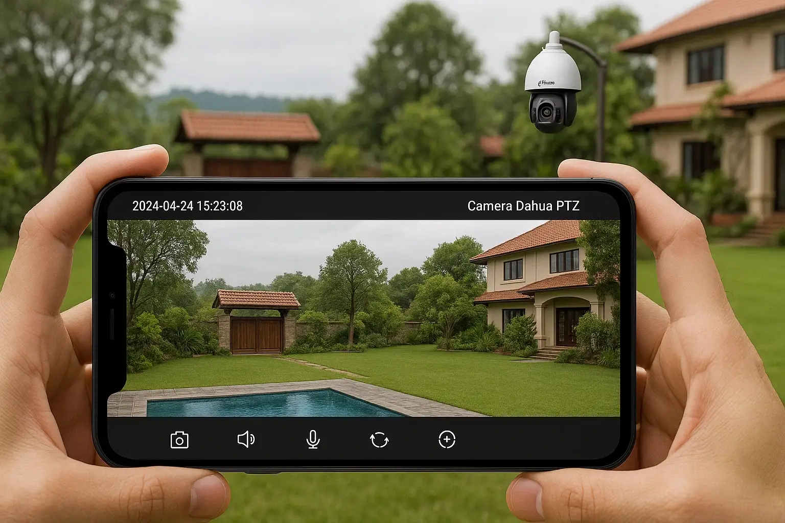kỹ thuật viên ITVmax đang lắp camera PTZ ngoài trời cho biệt thự nhà vườn tại xã Yên BàiLoại có ColorVu cho màu ban đêm