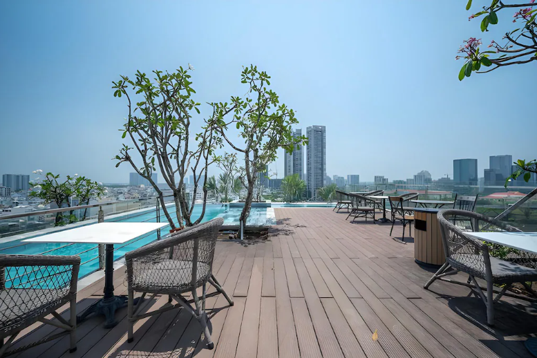 Mỗi sáng sớm, khi ánh mặt trời vừa nhô lên từ các tòa nhà cao tầng của Quận 7, bạn có thể ngâm mình dưới làn nước trong xanh, nghe tiếng nhạc nhẹ du dương và hít một hơi thật sâu không khí mát lành. Buổi chiều, nơi đây trở thành điểm check-in yêu thích của khách lưu trú – ánh nắng hoàng hôn, tách cà phê, ly cocktail và cuốn sách nhỏ.